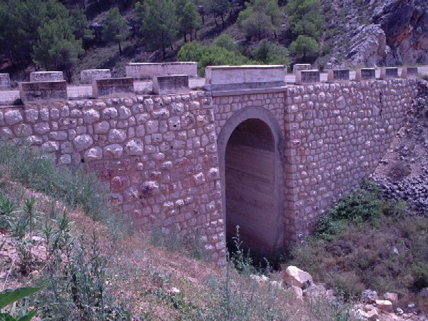 Se trata de una infraestructura sobre la Carretera A-2501 que remonta un barranco. Se compone de un único arco de medio punto, de escasa luz. Presenta una gran fachada en cuyo centro localizamos el arco, siendo el material principal el hormigón, especialmente visible en el trasdós del arco. El resto de las superficies se ha revestido de trabajo de cantería, recurriendo de forma combinada al sillar y sillarejo, cohesionado con cemento.